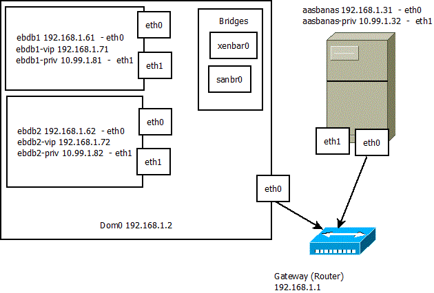 192.168.1.61 ebdb1 192.168.1.62 ebdb2 10.99.1.192 ebdb1-priv 10.99.1.193 ebdb2-priv 192.168.1.71 ebdb1-vip 192.168.1.72 ebdb2-vip