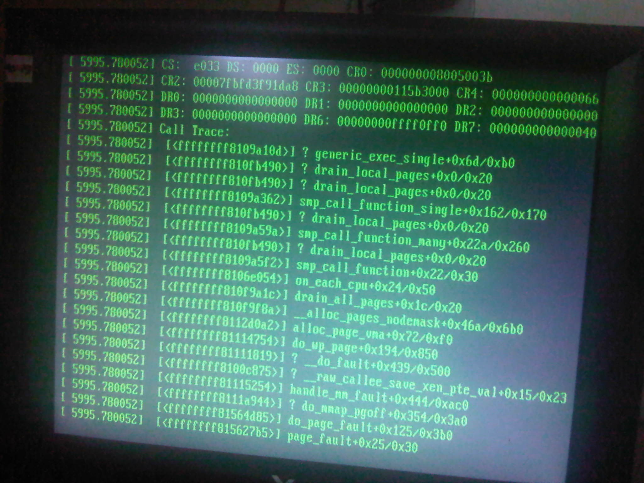 trace displayed), or soft lock (magic sysrq still working).